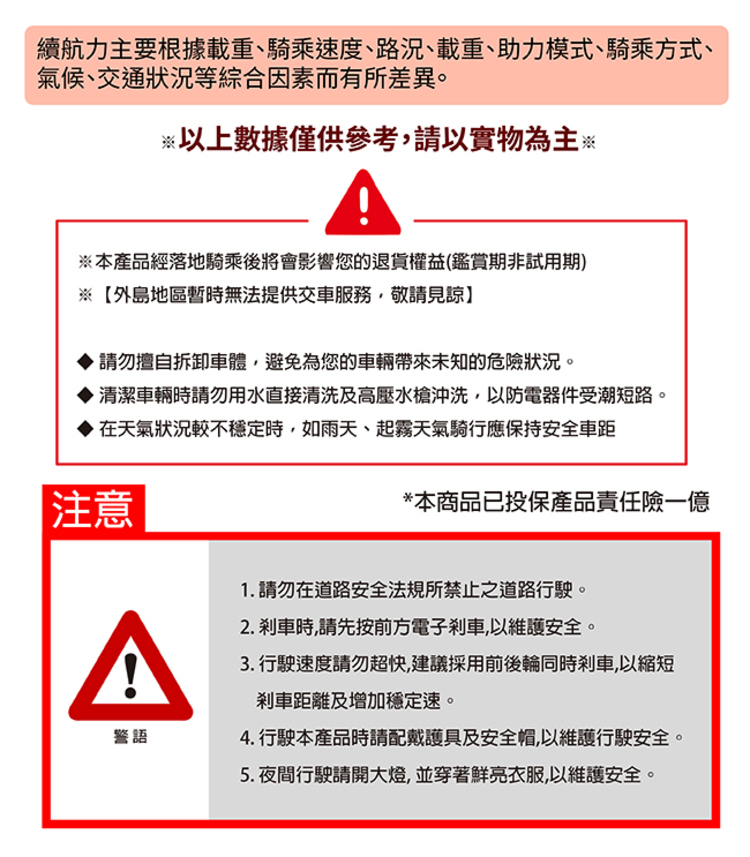 ※本產品經落地騎乘後將會影響您的退貨權益(鑑賞期非試用期)