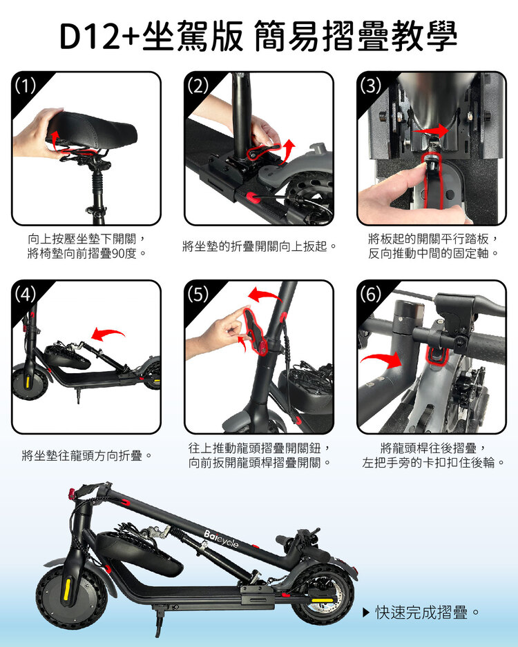 Baicycle D12 9吋智能折疊電動滑板車(坐駕版)